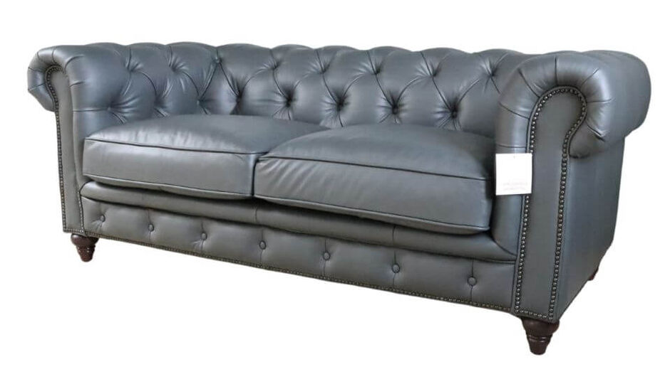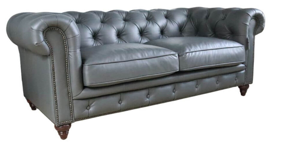 Noble Chesterfield 2 Seater Grey Nappa Leather Sofa
