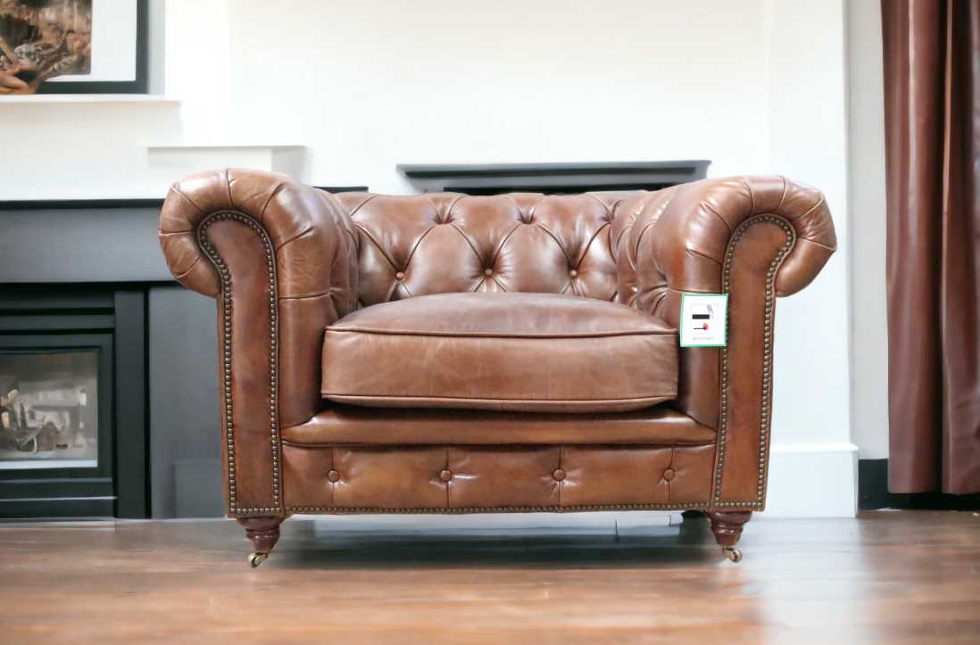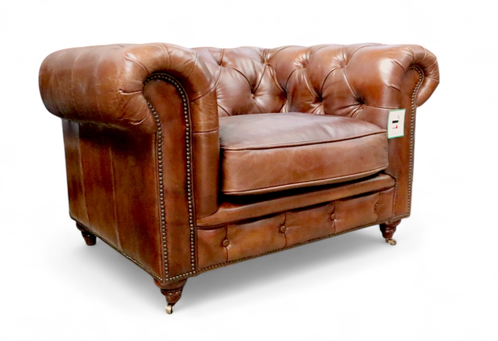 From the UK’s leading vintage leather furniture the Chesterfield Buttoned Vintage Leather Club Chair, Available in a wide range of vintage distressed colours (Brown, Black, Tobacco, Rouge, Tan)