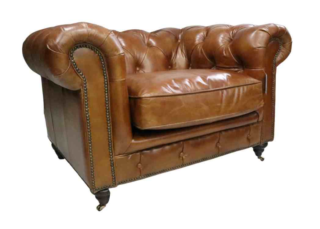 Noble Chesterfield Club Chair Vintage Tan Distressed Real Leather