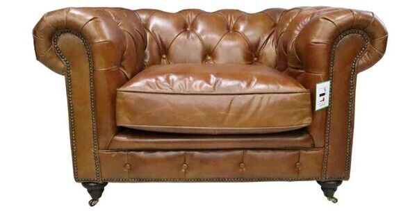 Vintage Chesterfield Leather Sofa – Genuine Hand-Tufted Tan Leather – Classic Elegance
