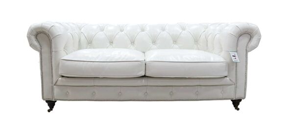 Noble Grande Chesterfield Vintage 3 Seater Nappa White Real Leather Sofa