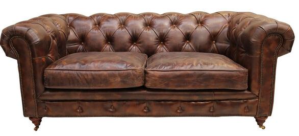Noble Vintage Distressed Tan Leather Chesterfield 2 Seater Sofa