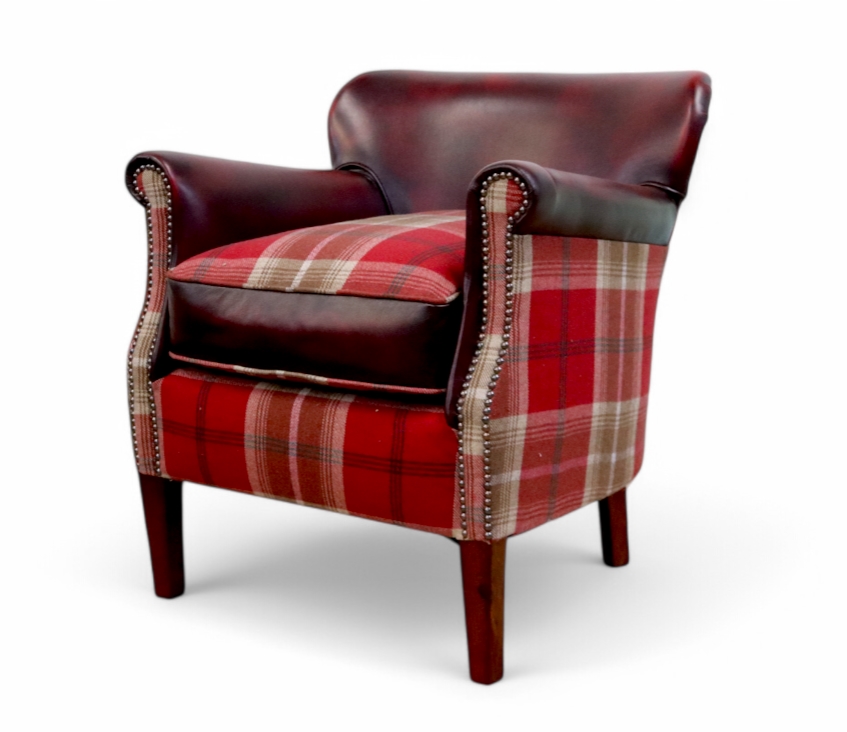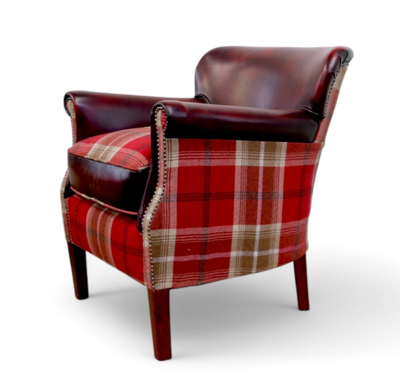 Professor Antique Oxblood Leather & Tartan Balmoral Red Armchair