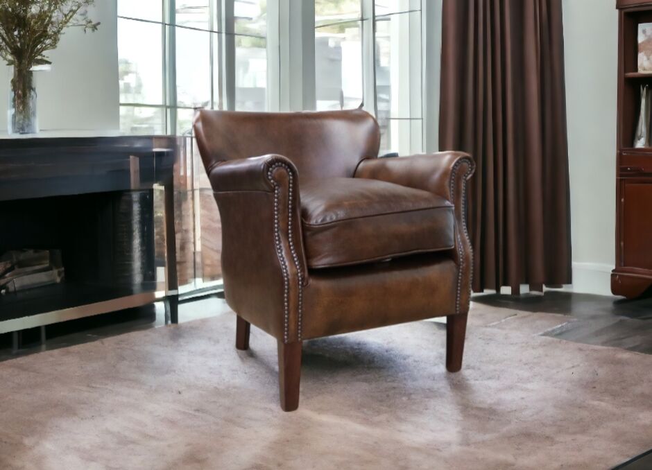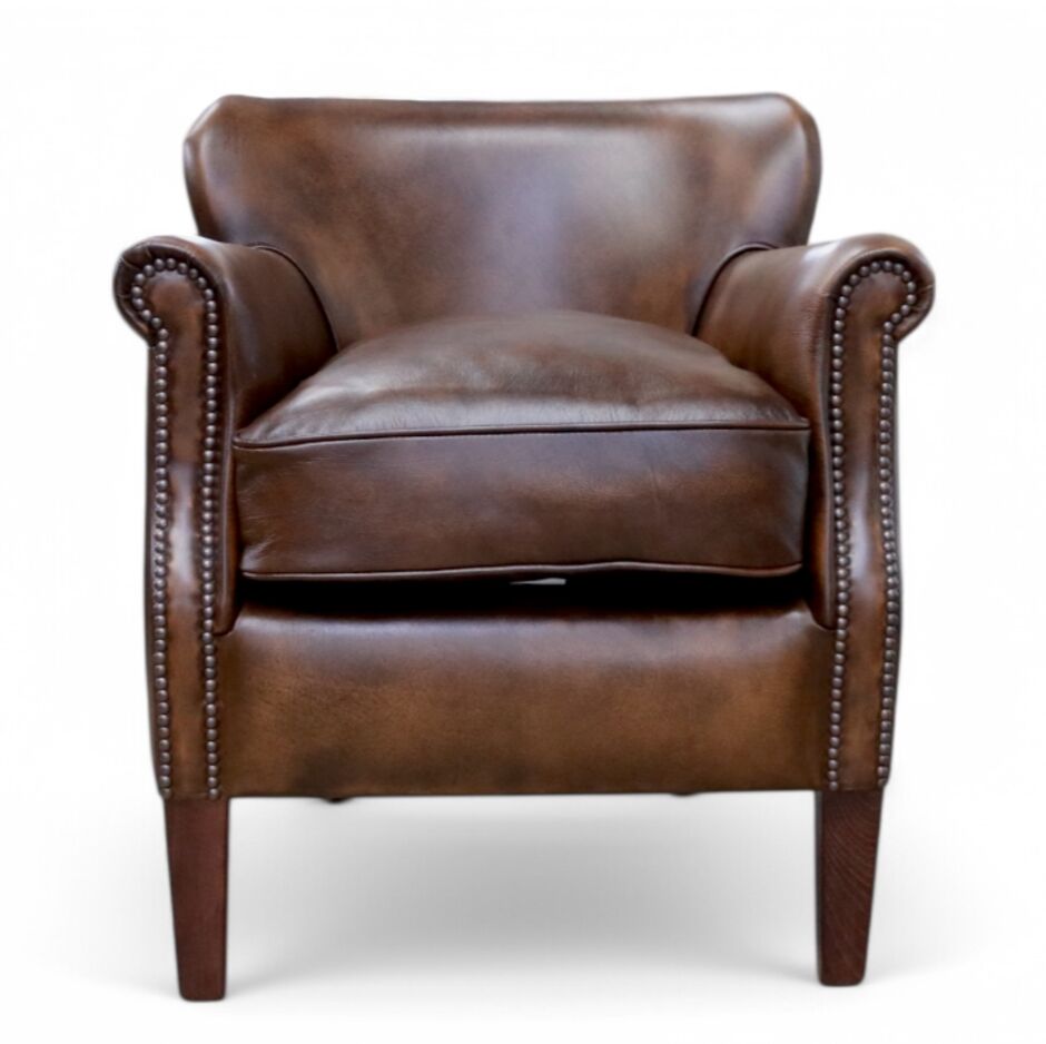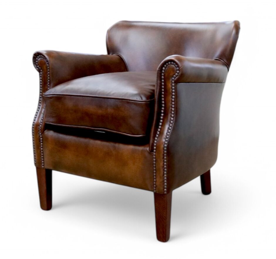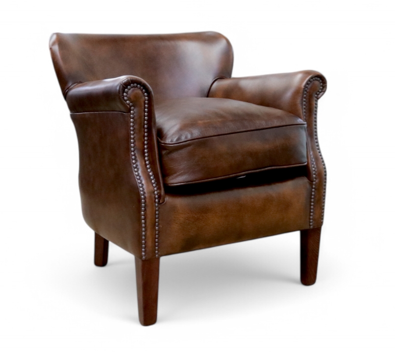 Vintage leather luxury with our Professor Vintage Leather Armchair, proudly crafted by the UK's leading experts in fine leather furniture. With a beautifully reworked rounded back and elegantly lowered arms, this chair exudes refined sophistication, making it an ideal addition to any entry hall or bedroom.