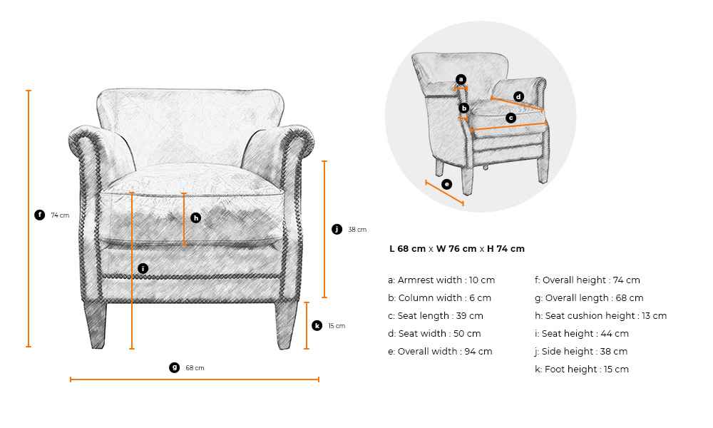 Dimensions (CM) Armchair W64 X D73 X H76 Apprx.