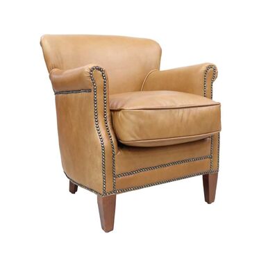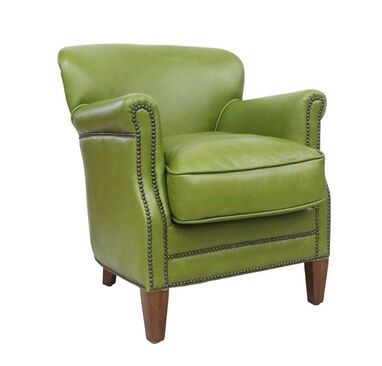 Add timeless elegance to your space with this classic Grey leather club chair. Crafted with top-grain soft leather and detailed with antique brass nailhead trim, this chair combines comfort with distinguished style. The plush seat cushion and gently flared backrest make it perfect for relaxing with a book or making a statement in your office or study.