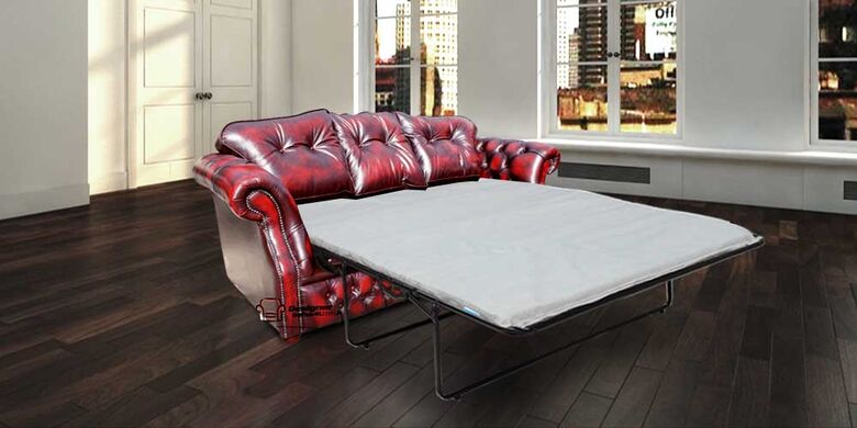 Era 3 Seater Pull Out Sofa Bed In Traditional Chesterfield Antique Oxblood Red Leather