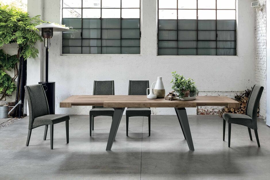 SCIROCCO 180 cm Extendable Table With White Painted Metal Structure Synchro-Texture Laminate Top