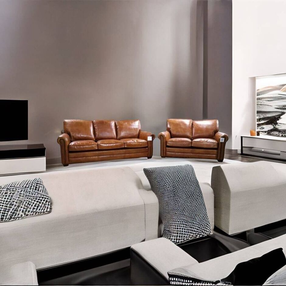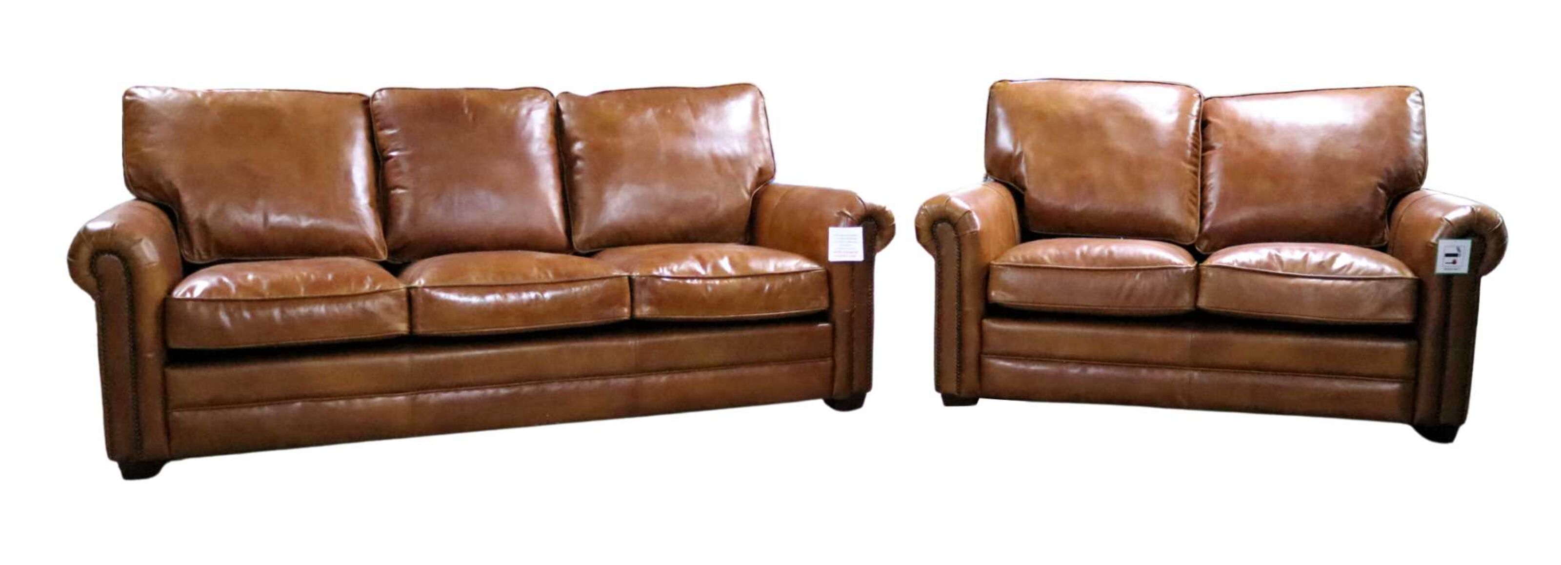 Bring timeless elegance and comfort into your home with this stunning vintage leather sofa. Upholstered in high-quality distressed leather, this sofa features deep seat cushions and plush backrests for ultimate relaxation. Its rolled arms and nailhead trim detail add a classic touch, making it perfect for both traditional and modern interiors.