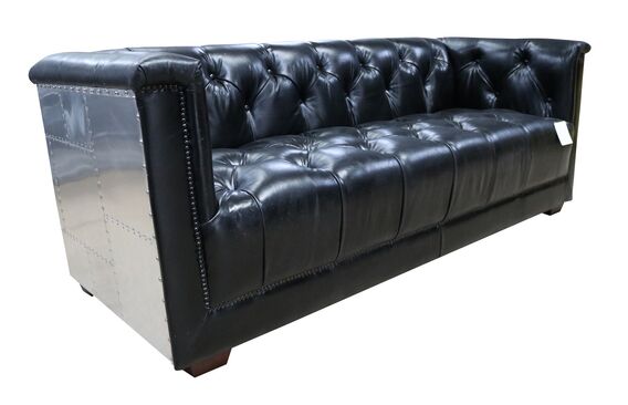 Spitfire Chesterfield 3 Seater Vintage Distressed Leather Brown Aluminium Sofa        Chesterfield Spitfire Vintage Black Leather Sofa Settee     Chesterfield Spitfire Aviator Black Leather Sofa