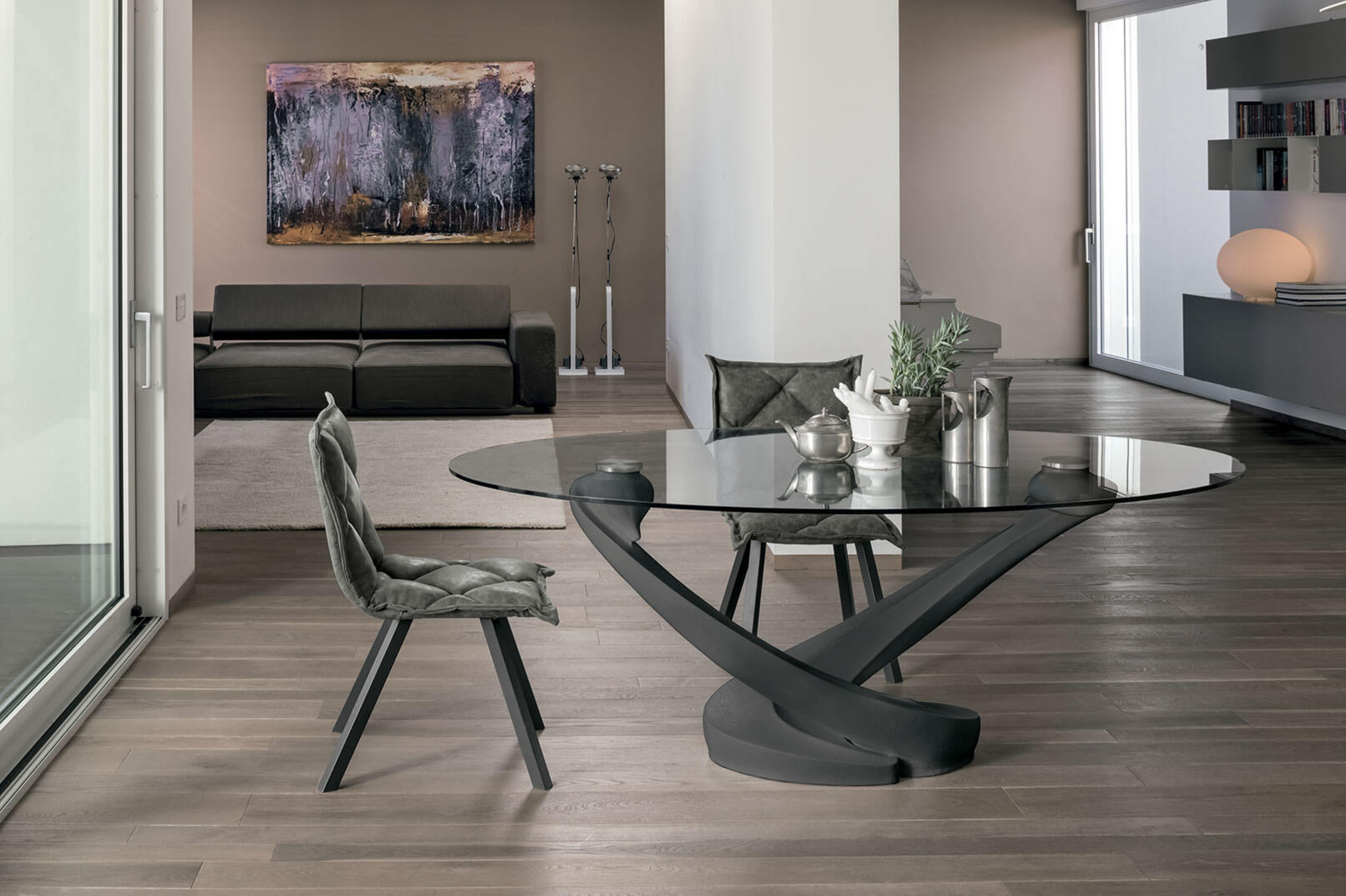 Tango Non Extendable Dining Table Graphite Agglomerate Base And Transparent Tempered Glass Top