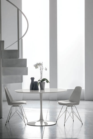 Flute Italian Round Dining Table With Glossy White Painted Metal Structure Glossy White Painted Top