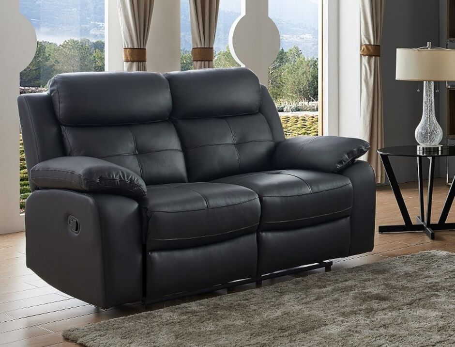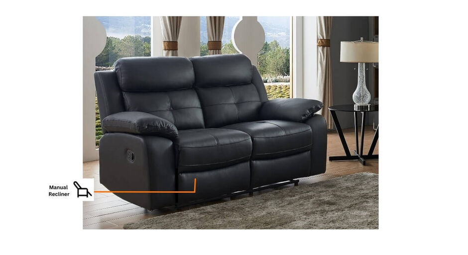 Toronto Reclining 2 Seater Sofa Black Leather Dimension