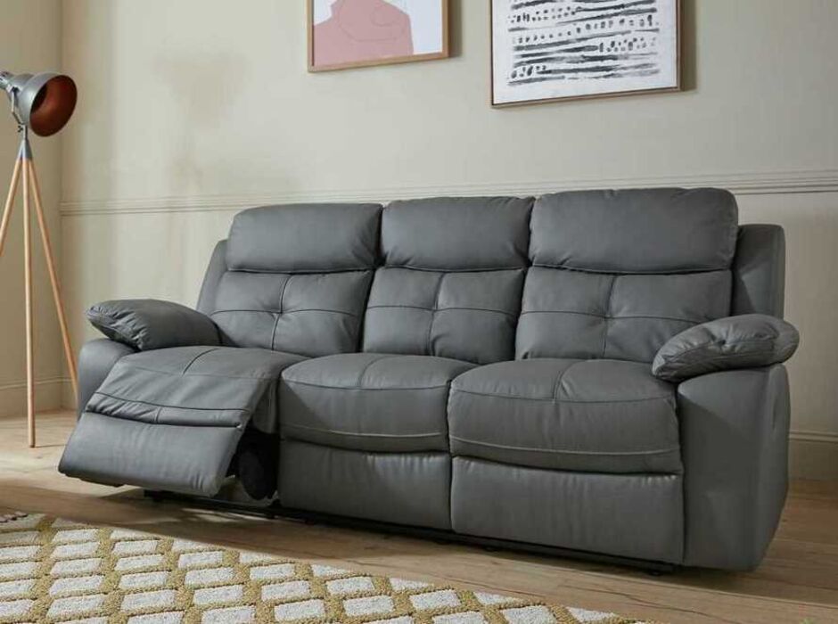 Toronto Reclining 3 Seater Grey Leather Sofa