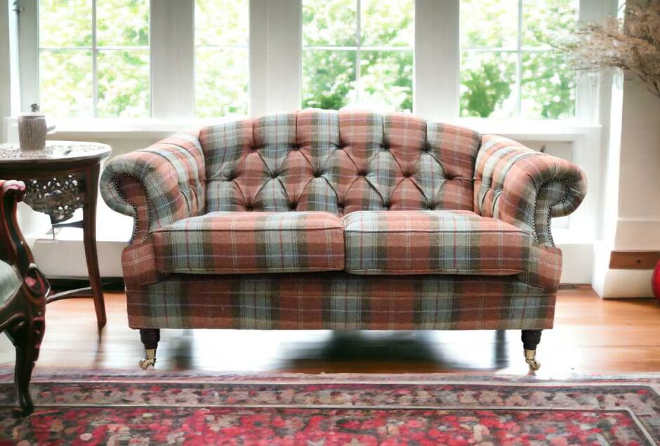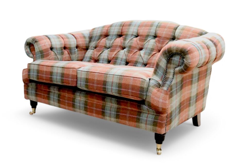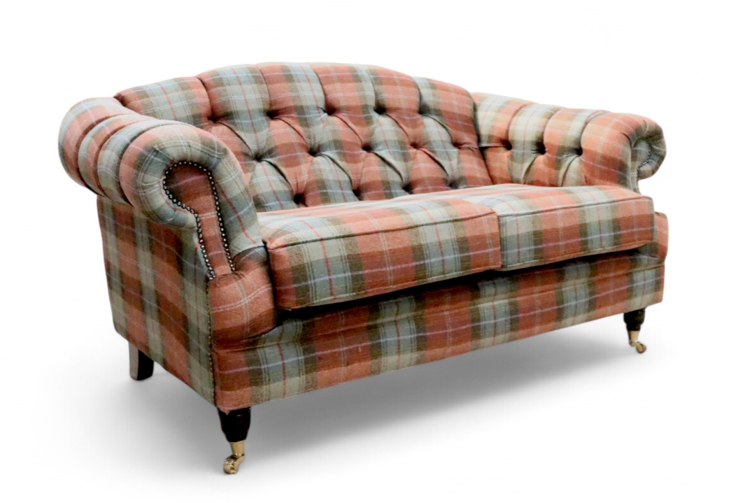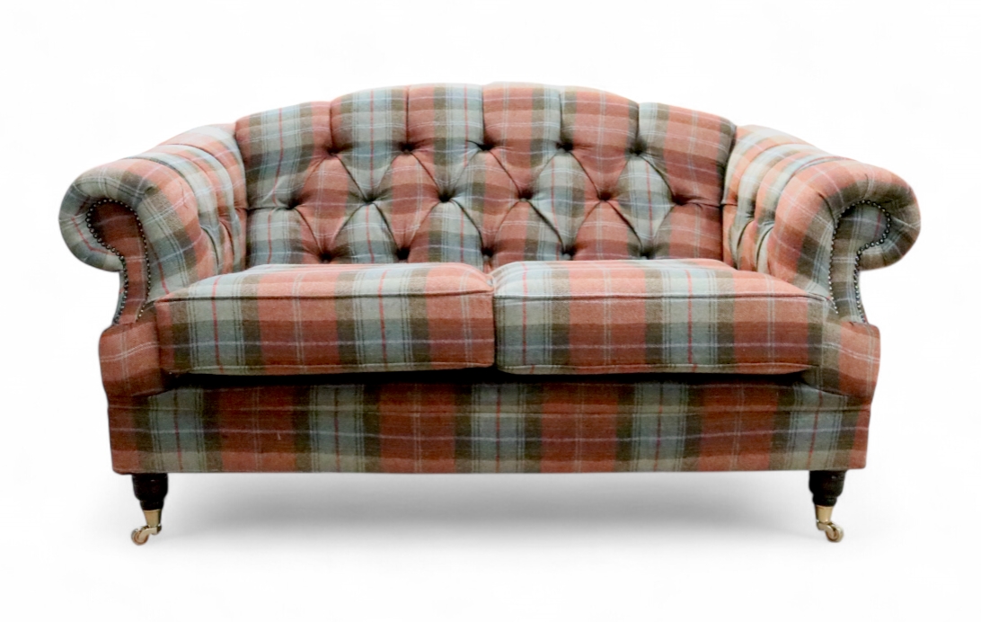 Victoria 2 Seater Chesterfield Plaid Chestnut Check Tweed Wool Sofa