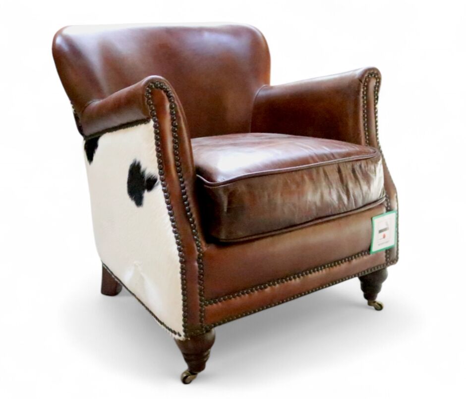 Vintage Leather & Cowhide Tub Chair – Rustic Elegance