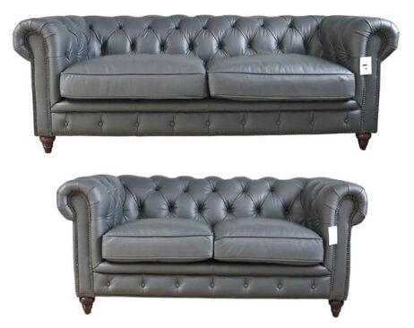 Belvedere Chesterfield 2 Seater Vele Iron Grey Leather Sofa