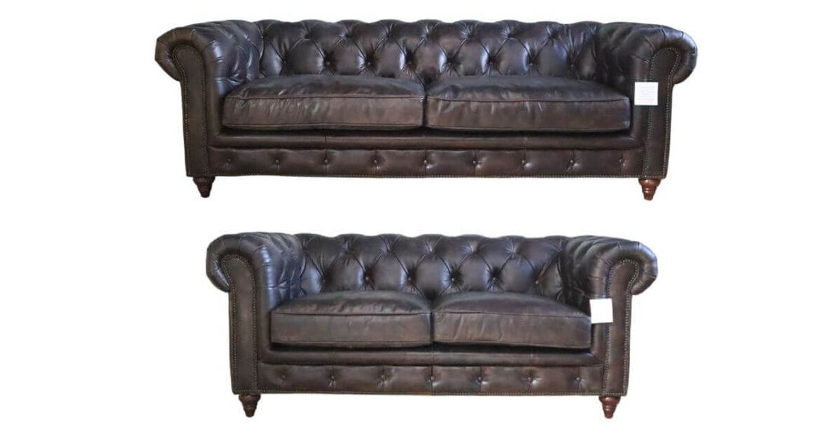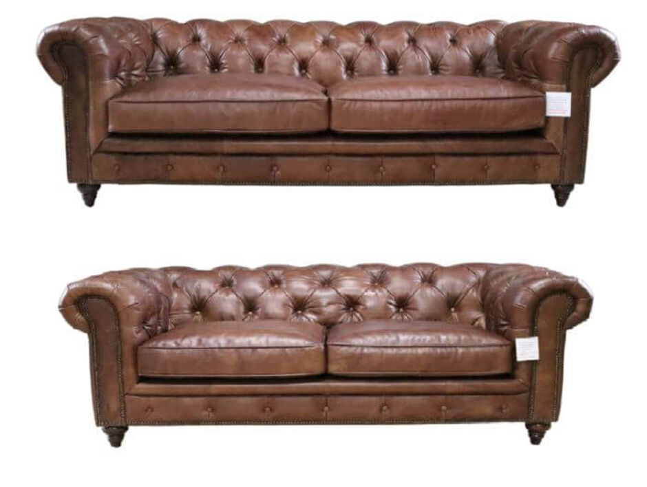 Noble Vintage Distressed Tan Real Leather Chesterfield 3+2 Seater Sofa Suite