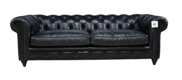 From uk leading vintage furniture stocklist this Furniture is Inspired by the grand Chesterfield designs, this 3 seater leather sofa combines a beautiful buttoned back and armrests, with a vintage studding in the front.