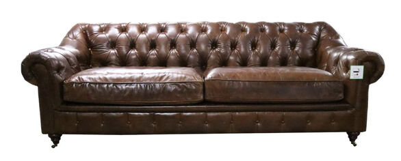 From UK's leding vintage furniture stocklist ,this is a special Wellington Sofa made with brass castors and with a buttoned back and arms in the Chesterfield style. The comfort of the Wellington and the 'look' of the Chesterfield is a nice combination. Foam and Feather Filled.