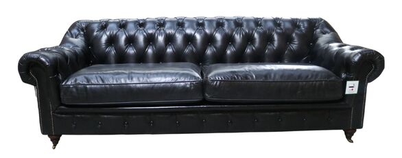 From UK's leding vintage furniture stocklist ,this is a special Wellington Sofa made with brass castors and with a buttoned back and arms in the Chesterfield style. The comfort of the Wellington and the 'look' of the Chesterfield is a nice combination. Foam and Feather Filled.