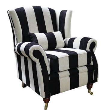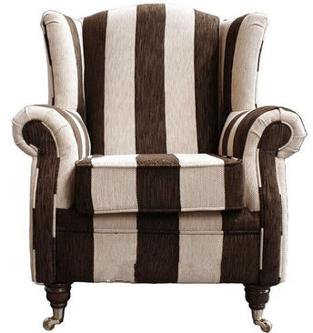 Fireside High Back Wing Chair Harrison Brown  Wing Chair Harrison Stripe Black Fabric