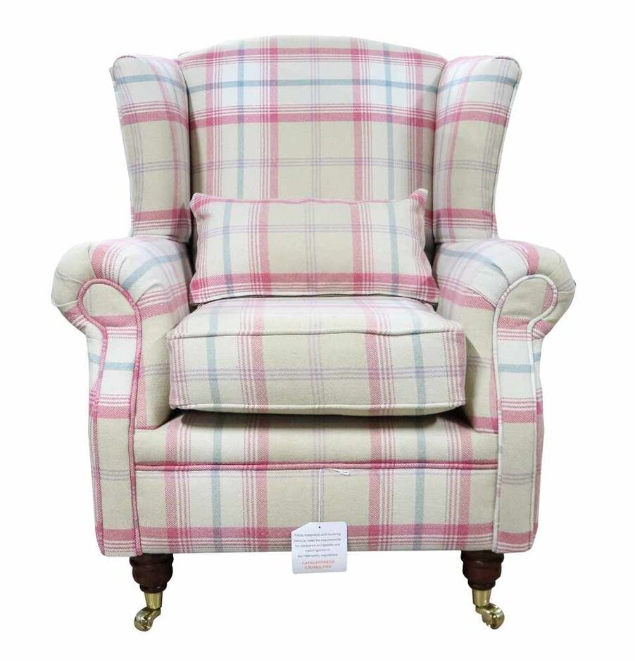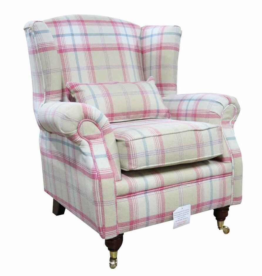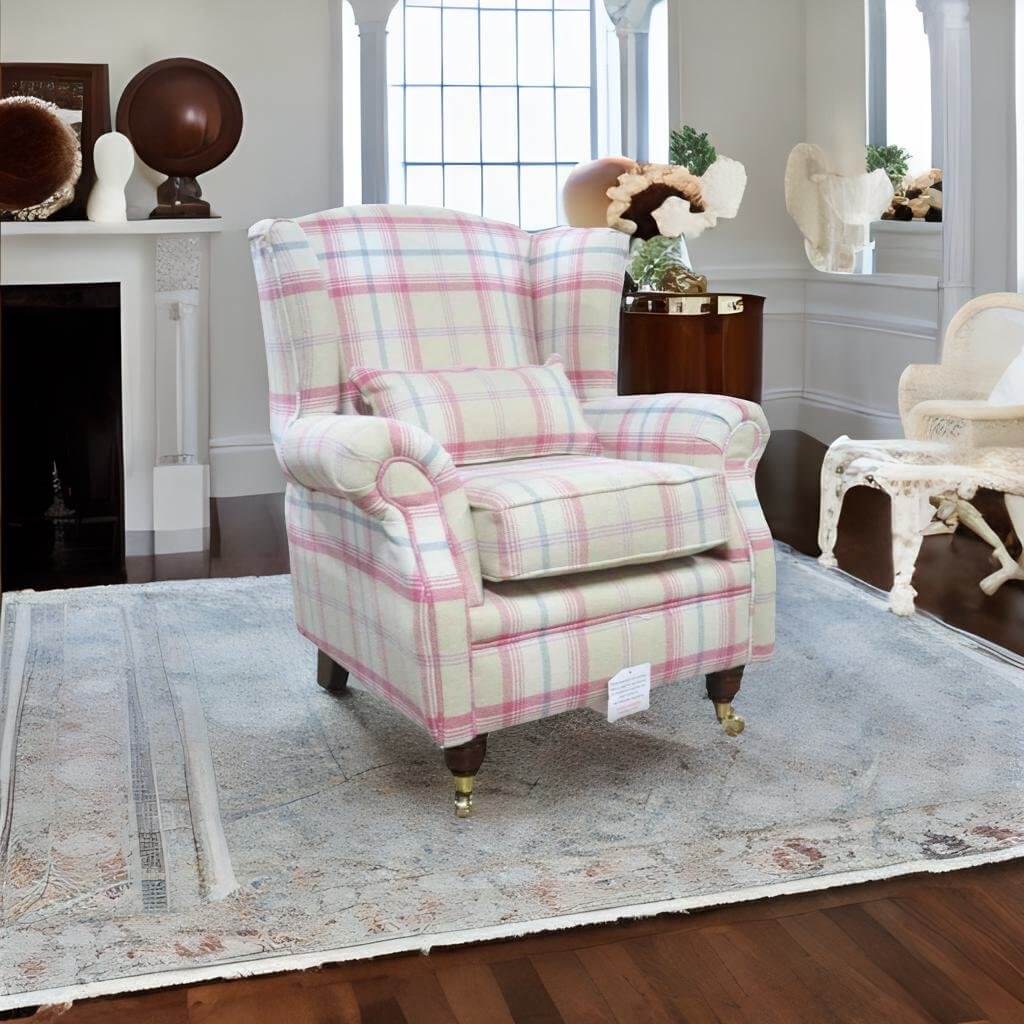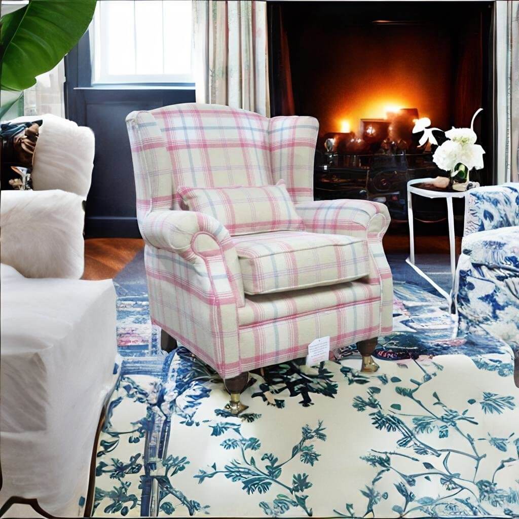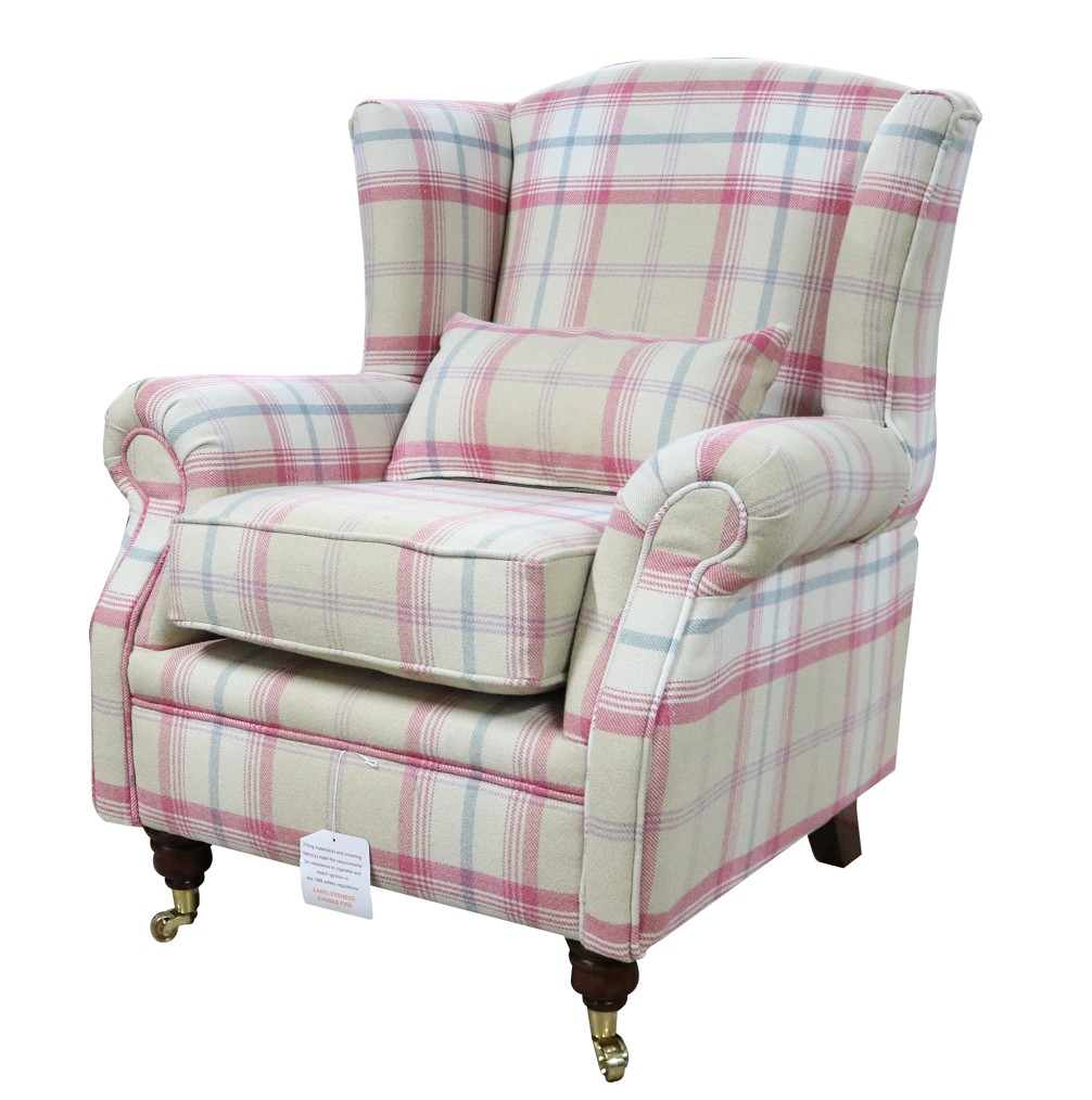 Wing Chair Fireside High Back Armchair Balmoral Sorbet Check Fabric P&S