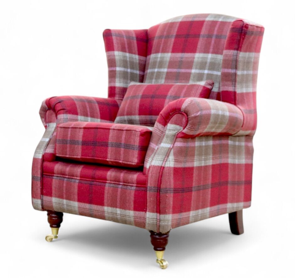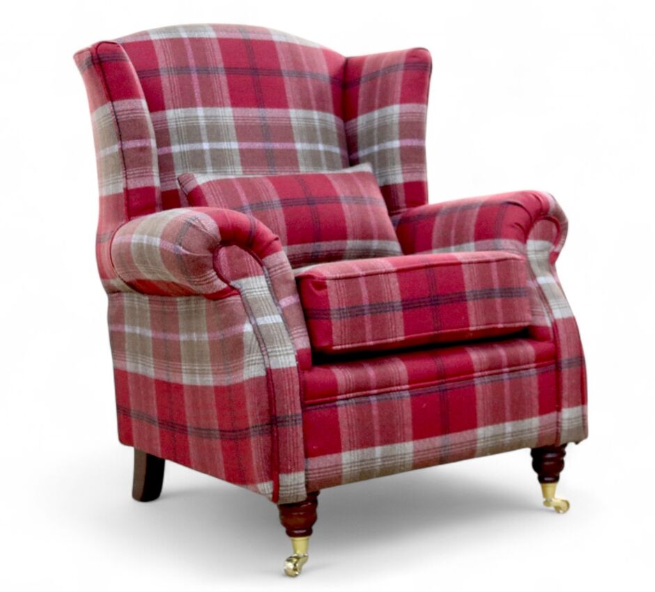 Wingback Fireside Armchair – Balmoral Red Check Fabric
