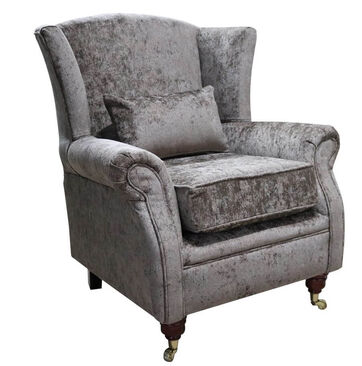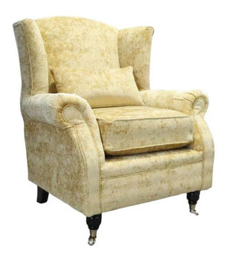 This traditionally styled wing chair has polyester fibre seat cushion and high tensile comfy cushions. Featuring hardwood Turned Mahogany Brass legs with rollers. Upholstered in Luxurious Designer Fabric exclusively available from Designer Sofas4u.