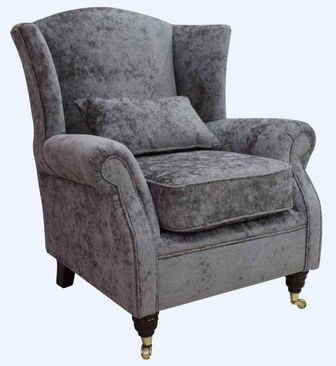 Wing Chair Fireside High Back Armchair Belvedere Pewter Grey Fabric