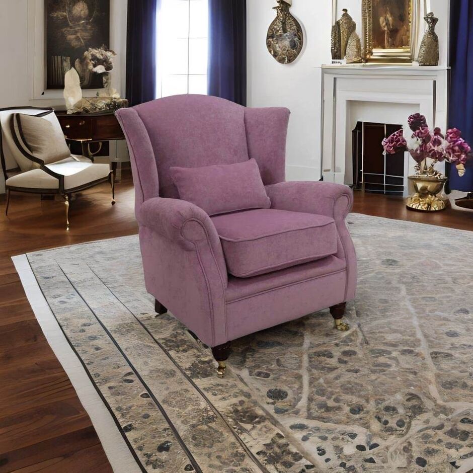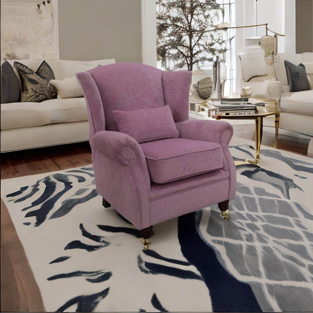 Wing Chair Fireside High Back Armchair Velluto Amethyst Purple Fabric